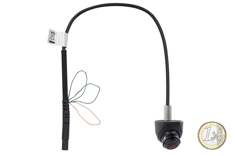 Mini NTSC Front- und Rückfahrkamera mit verstellbarem Kugelkopf und 2 Gehäusen. Einfache Montage durch kabelführendes Gewinderohr mit Kontermutter (Gehäuse 1) oder schraub- oder klebbares Gehäuse (Gehäuse 2). Horizontaler Unterbau und vertikaler Anbau durch Drehen der Kugel möglich. Professioneller Systemkabelsatz in ausreichender Länge und mit automotiven Steckverbindungen. Dank Kabel und Stecker mit geringem Durchmesser lässt sich das Kabel einfacher verlegen.