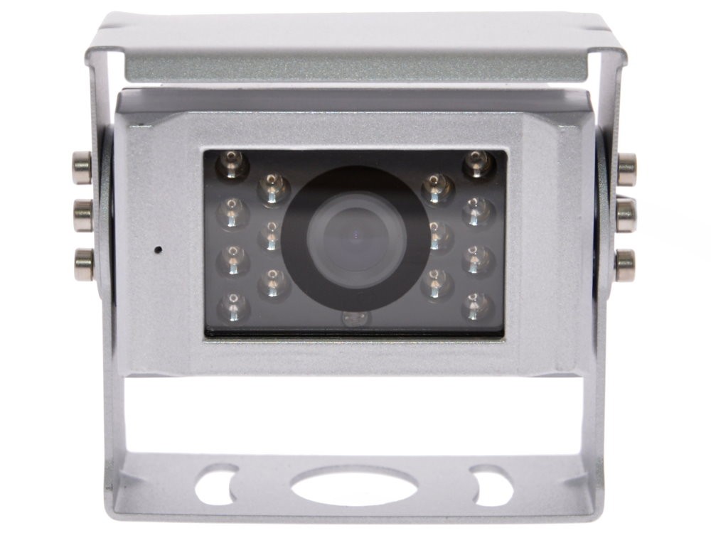 Aufbau-Rückfahrkamera NTSC mit 120° diagonalem Sichtwinkel, Sonnensegel und integrierter Infrarotbeleuchtung für ausreichende Beleuchtung bei Dunkelheit.