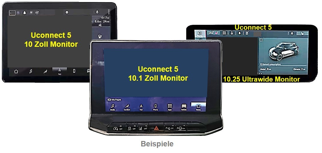 Uconnect R1 EXT oder R1 INT Harman Head-Unit mit separatem 10 Zoll oder 10.25 Zoll ultra-wide Tablet-Monitor | |